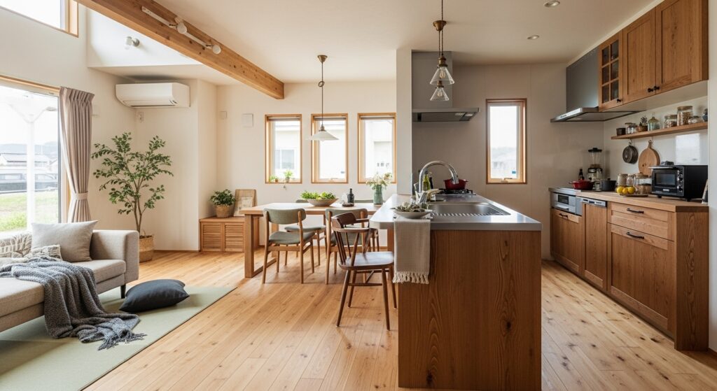 「時間の経過とともに味わいが増す、本物の無垢材の経年美化」 「日当たりと風通しを計算した、湿気の少ない山梨の気候に合う家」 「料理や子育てがスムーズに!回遊動線を取り入れた家事楽設計」